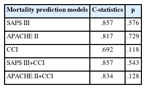 | Mortality prediction models | C-statistics | pa) |