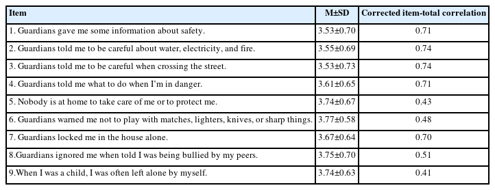 | 2. Guardians told me to be careful about water, electricity, and fire. | 3.55±0.69 | .74 |